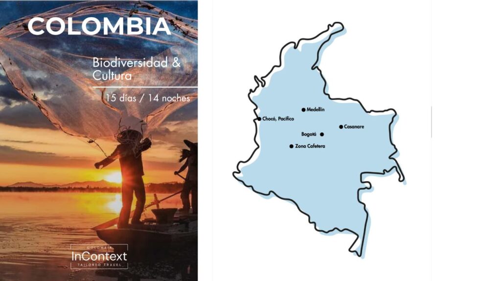 Esta ruta reúne dos de las mayores fortalezas de Colombia: su extraordinaria diversidad natural y los mundos culturales que han crecido dentro de ella. Desde el entorno andino de Bogotá y los ecosistemas únicos del páramo, hasta los llanos de Casanare con su fauna en libertad, los paisajes cafeteros del centro del país, la energía creativa de Medellín y la selva húmeda y el litoral del Pacífico, este recorrido revela una Colombia de contrastes muy marcados y conexiones profundas. Más que un itinerario centrado en la naturaleza, es un viaje cuidadosamente diseñado por paisajes, comunidades y formas de vida que muestran hasta qué punto cultura y entorno están estrechamente ligados en el país.